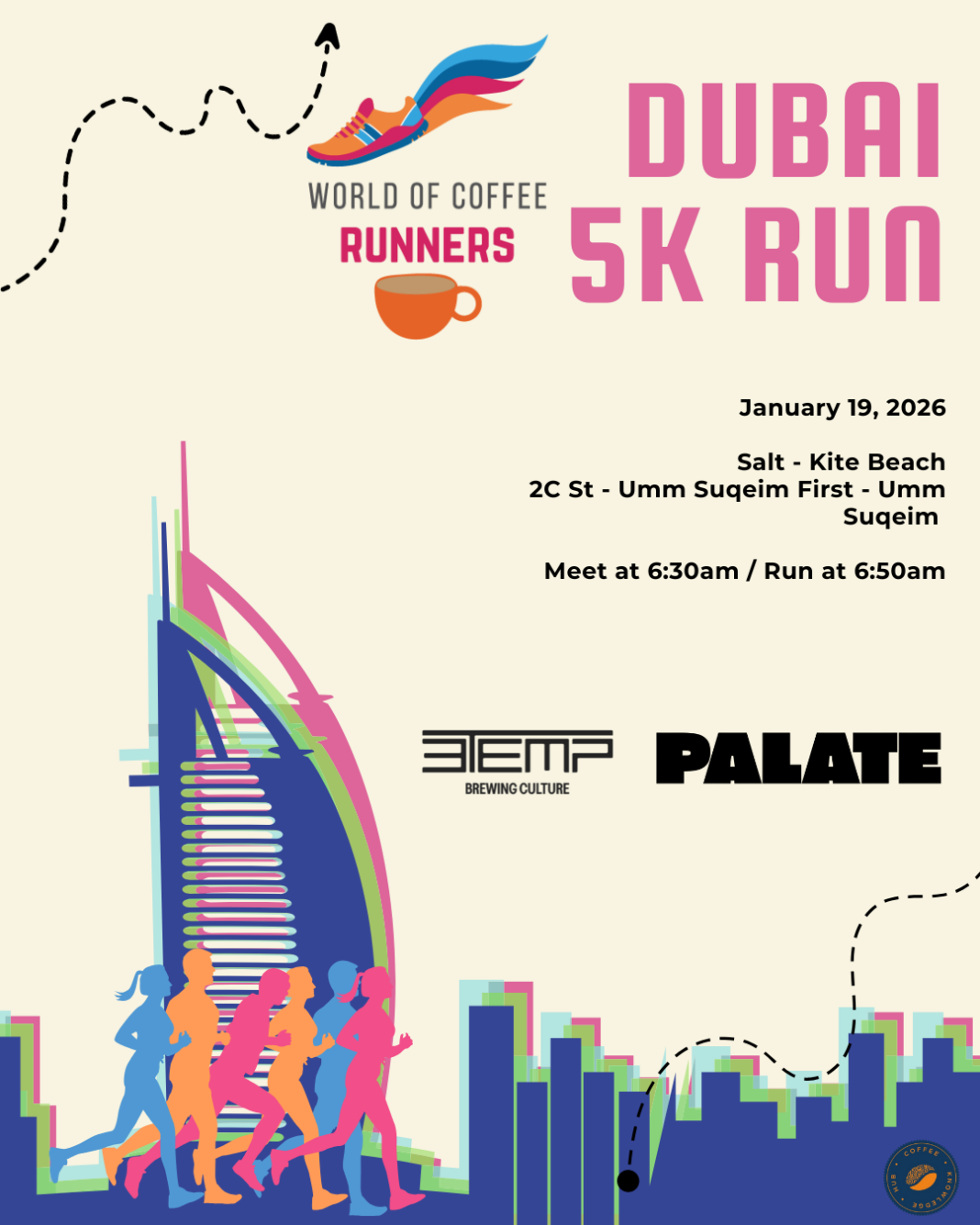 L’appuntamento per la prima WOC Runners del 2026 è per lunedì 19 Gennaio alle ore 6:30 (Dubai time) presso Salt Kite Beach. La corsa di 5 chilometri dedicata a tutti i coffee lover del mondo avverrà lungo la splendida Kite Beach su un percorso “out and back”. Per partecipare iscriviti qui