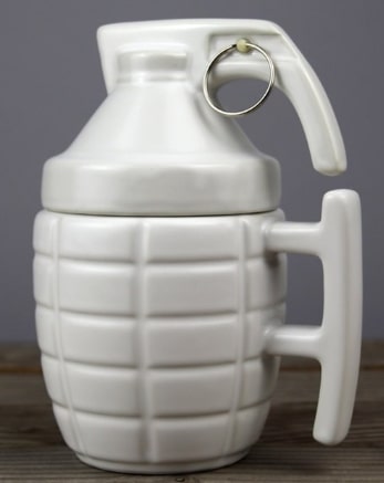 La Tazza Granata con coperchio è perfetta per i guerrafondai e i Rambo nel midollo. O da regalare a un pacifista per vederlo sbiancare più della ceramica di cui questa tazza è composta. Prezzo: 11,90 euro su dottorgadget.it