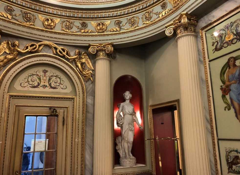 Locali che sono autentiche perle di rara bellezza, con arredi barocchi e boiserie intagliate a mano, con specchiere dalle cornici dorate e soffitti splendidamente decorati con stucchi ed affreschi, spesso realizzati dagli stessi artisti che operavano alla corte dei duchi e delle famiglie aristocratiche della città.