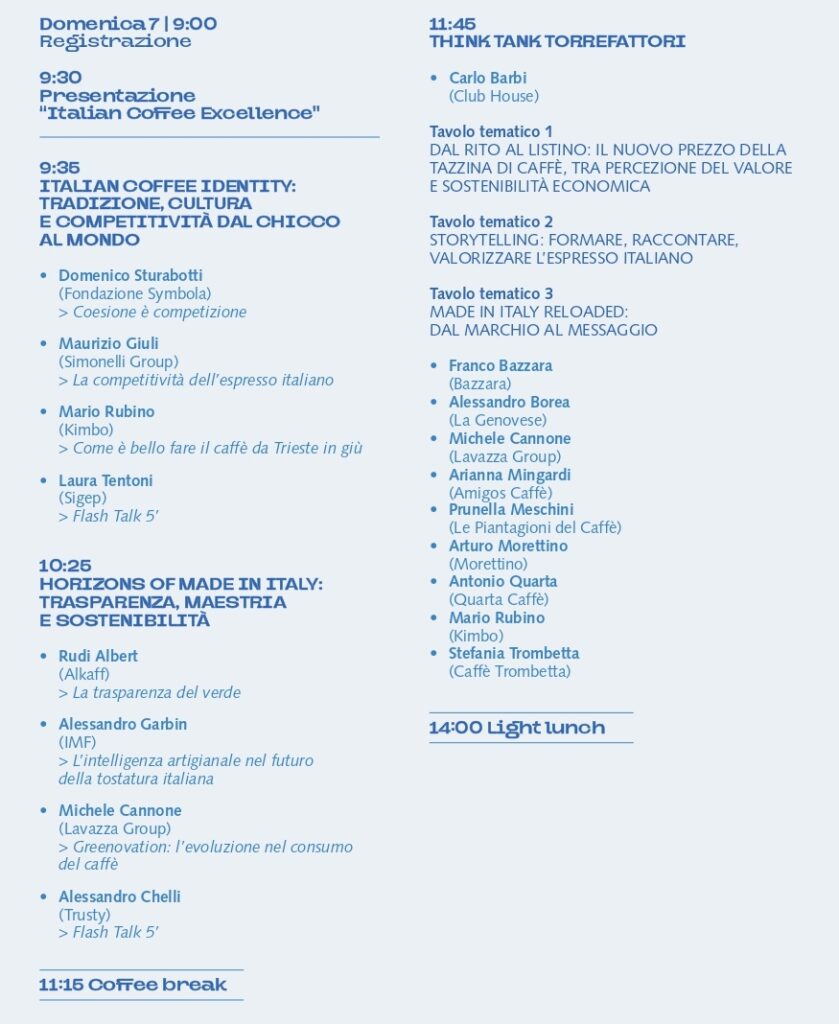 Dal 2 al 5 dicembre sono in programma conferenze, presentazioni, spettacoli e workshop con esperti del settore, e dal 3 all’8 dicembre il “Mercatino del Caffè” in Piazza Verdi, che anticipa il Mercatino di Natale che vedrà la sua inaugurazione il 7 Dicembre.