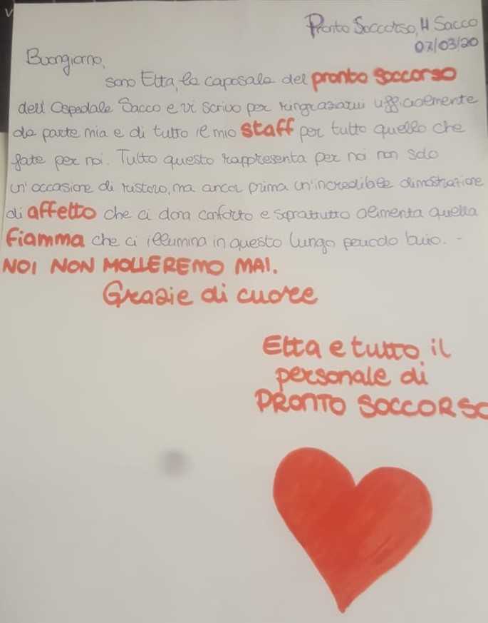 Provvedendo settimana dopo settimana al riassortimento. Un piccolo gesto di ringraziamento a tutti i medici e gli infermieri che tanto stanno dando con il loro impegno costante. In un momento così delicato” commentano i dipendenti dell’azienda.